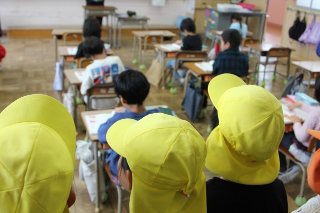 1年生は、ちょっと緊張した様子でしたが、小学校で頑張る姿を見ていただきました。
