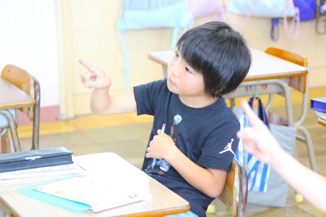 薮神保育園の年中さんと年長さんが、1年生の授業の様子を見学に来ました。