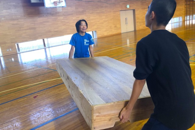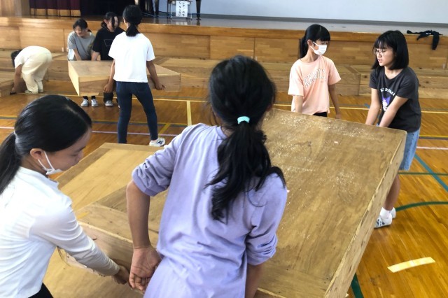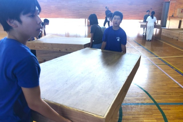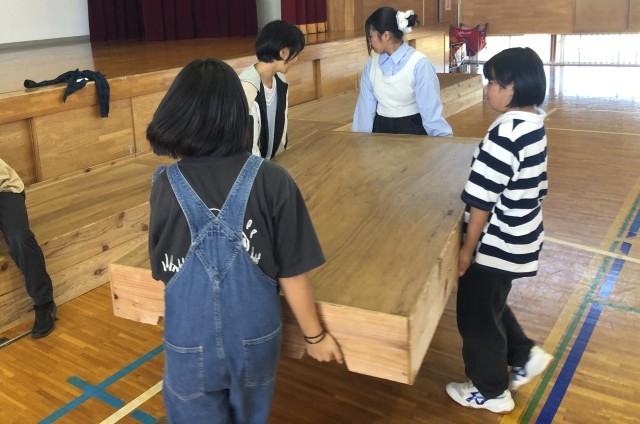 文化祭まで一か月を切ったということで、体育館にひな壇を設置しました。