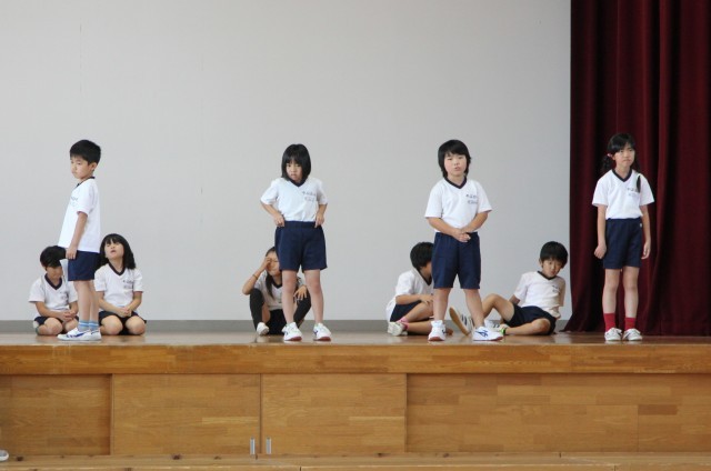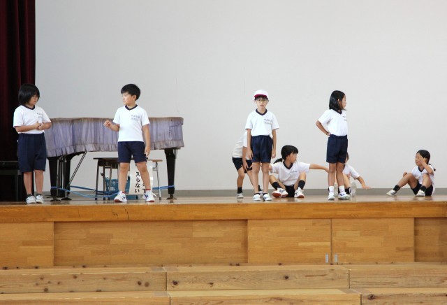 場面ごとに立ち位置が変わるため、子どもたちは覚えようと頑張っていました。