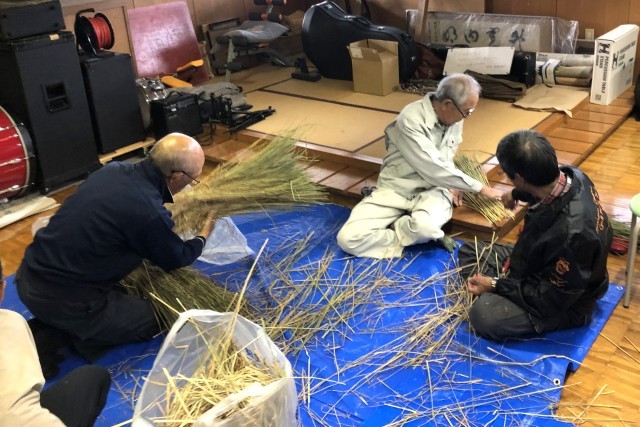 当校では、4年生以上の子が地域の方にわらを使った工芸品づくりを教わりますが、今日は、どのような工芸品をつくるかを打ち合わせました。