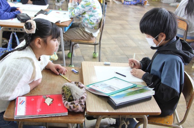 今日は、班のメンバーと相談しながら、どのような案内文にするかを考えました。