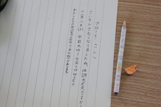 相手の体調を気遣った文を書いたり、文化祭の日時について正しく書いたりと、必要なことを考えながら書き進めていました。