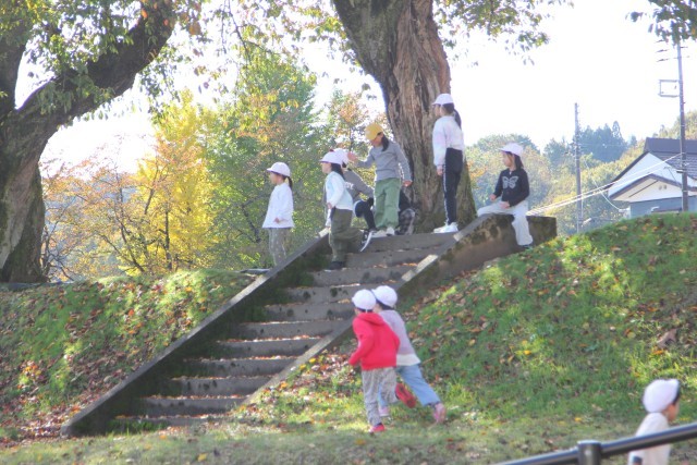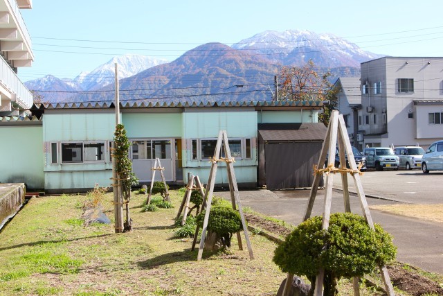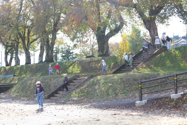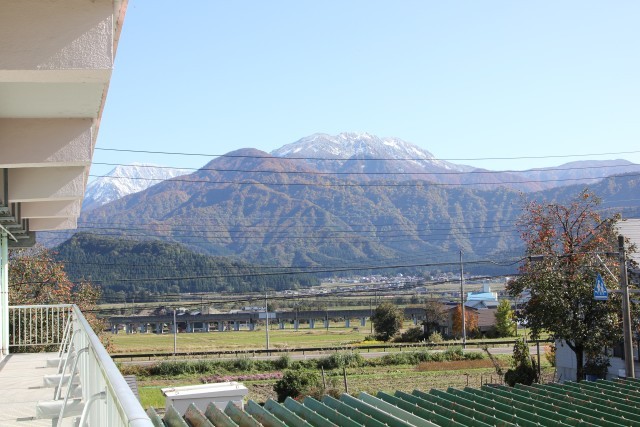 八海山は山頂付近が白くなり、校庭の桜の葉は紅葉・落葉が始まりました。