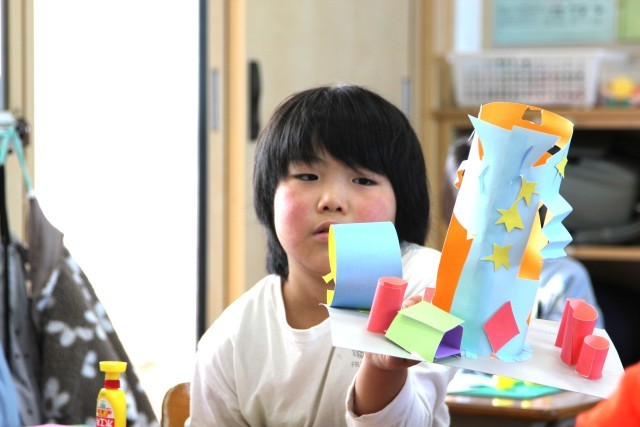 子どもたちは、イメージをふくらませながら、思い思いにたてものをつくっています。