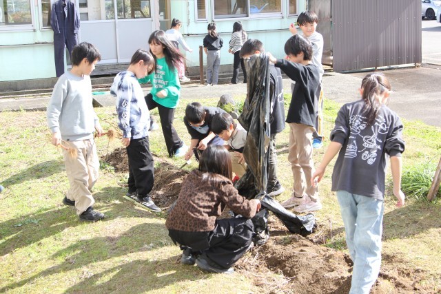 その後、みんなでマルチを外し、冬前に花壇の活動を閉じました。