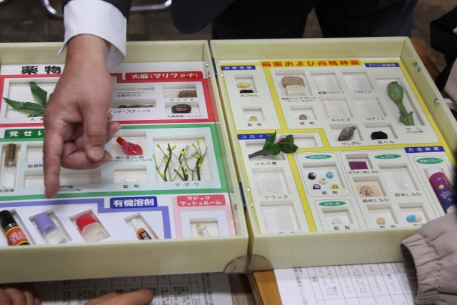 保護司会の皆さんは、薬物の標本を見せながら、様々な種類や形状のものがあることを教えてくださいました。
