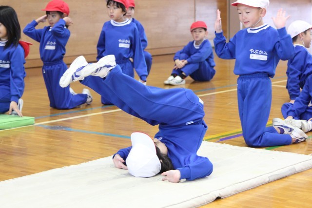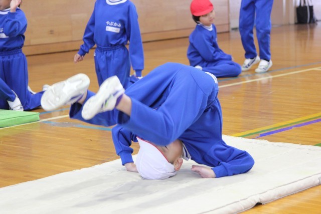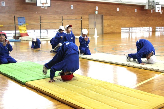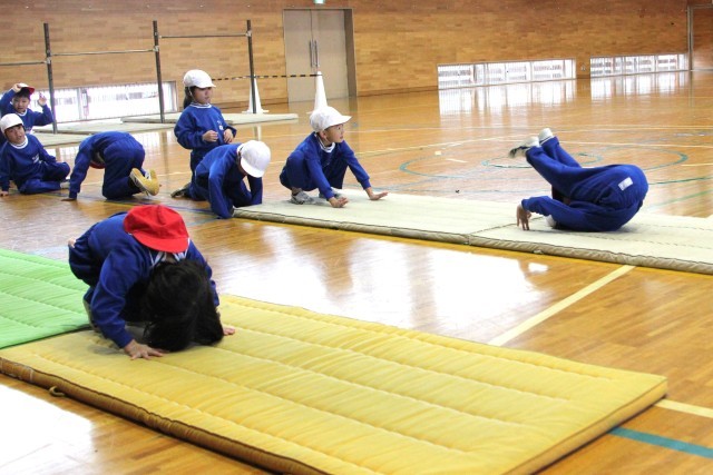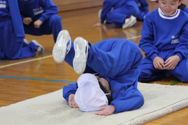 まずは、前回りです。手や頭のつき方を確認しながら挑戦してみました。