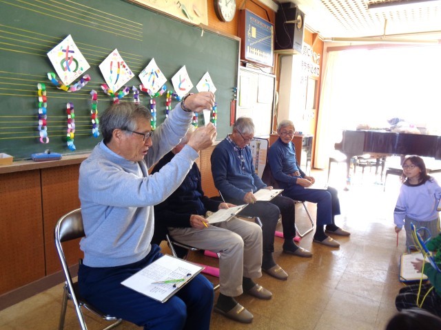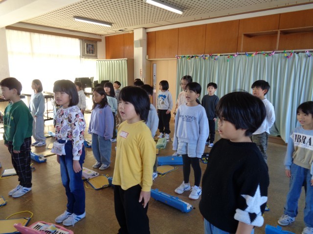 まずは、演奏や歌のプレゼントです。音楽の時間に練習してきた曲を、心を込めて届けました。