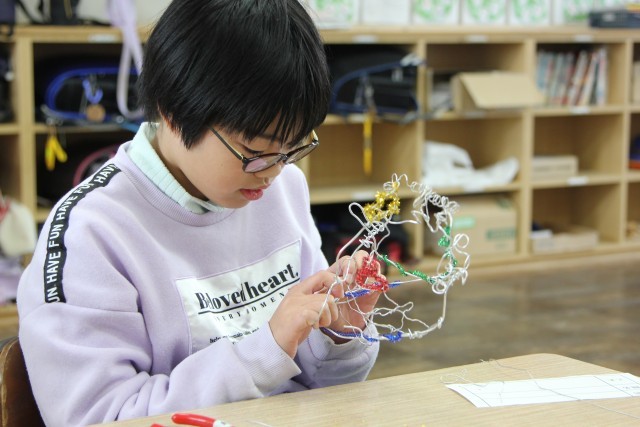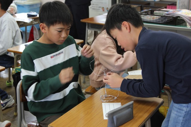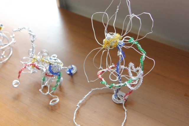 つくりたいものをイメージしてつくり始める子と、針金を曲げていく中で何か形が見えてくる子がいます。
