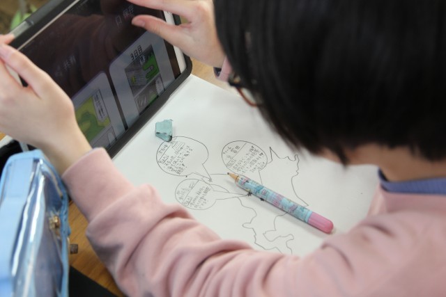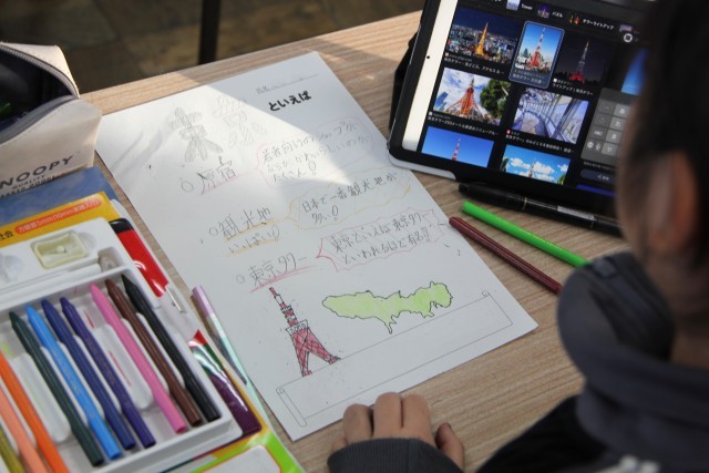 タブレット端末から情報を得て、みんな素敵なポスターをつくっていました。