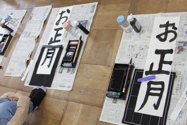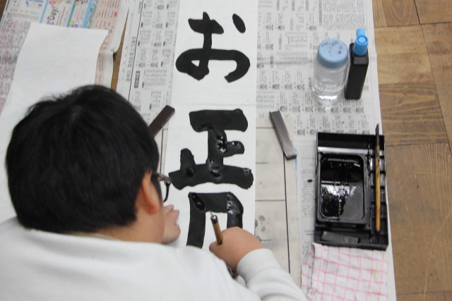 いつもより長い紙に、「お正月」と書きます。