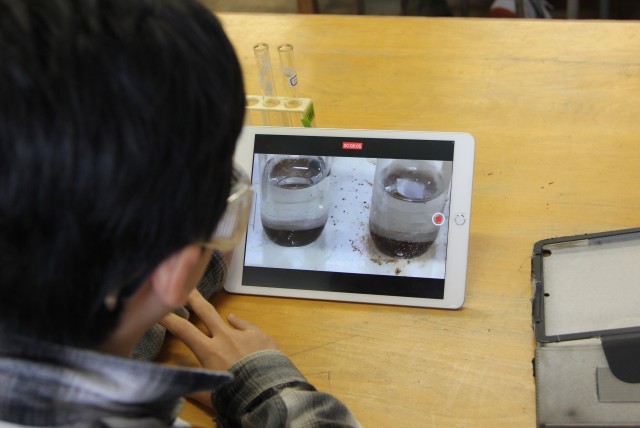 その様子に驚きながら、タブレット端末で録画する班もありました。