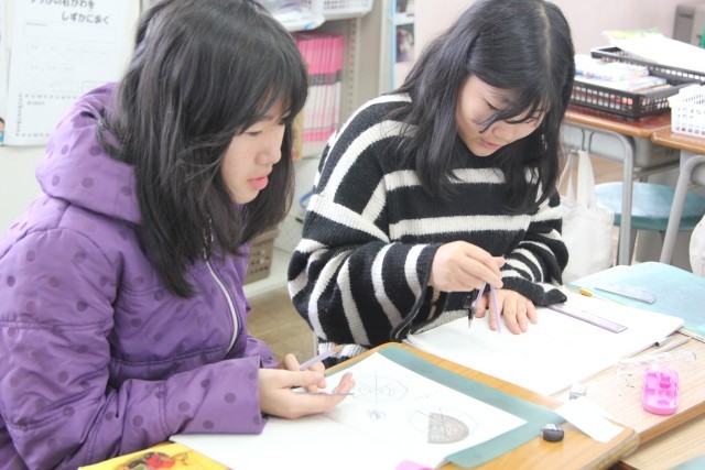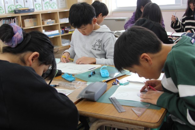 うまくいくと、班のメンバーにその方法を共有して、本当に描けるか確かめていました。