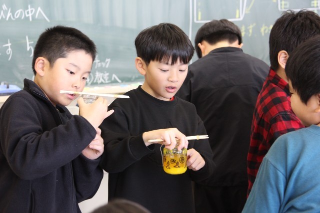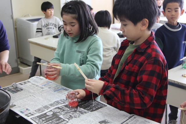 総合的な学習の時間、捨てられるものを使えるものに生まれ変わらせようという活動をしている4年生。