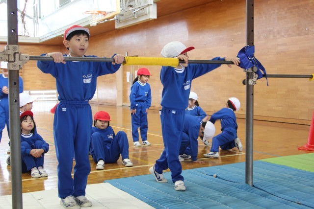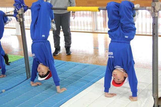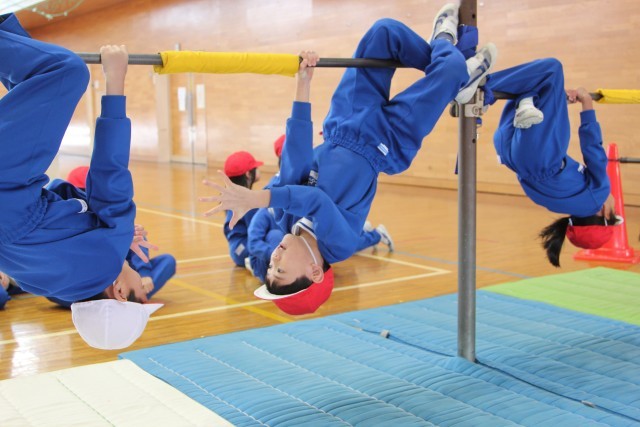 鉄棒に乗ってツバメさんになったり、前回りをしたりといった基本的な技だけでなく、足抜き回りやコウモリといったぶら下がり技にもチャレンジです。