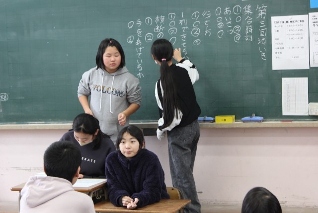 これまでの登下校の様子を振り返ったり、冬休みの過ごし方を確認したりする「地区子ども会」を実施しました。