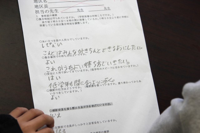 これまで、交通事故は1件もなく登下校できているので、安全に気を配った歩き方ができているのだろうと思っています。