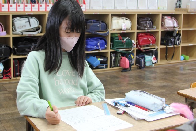 算数の時間は、これまで学習したことを復習するプリント学習を行いました。