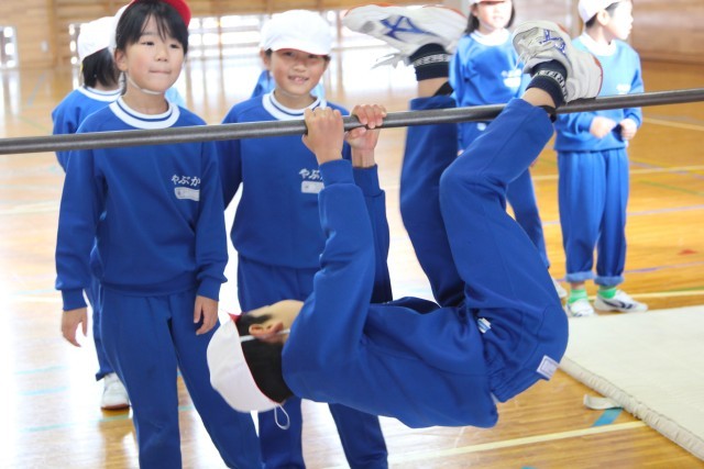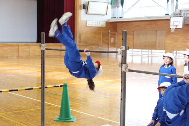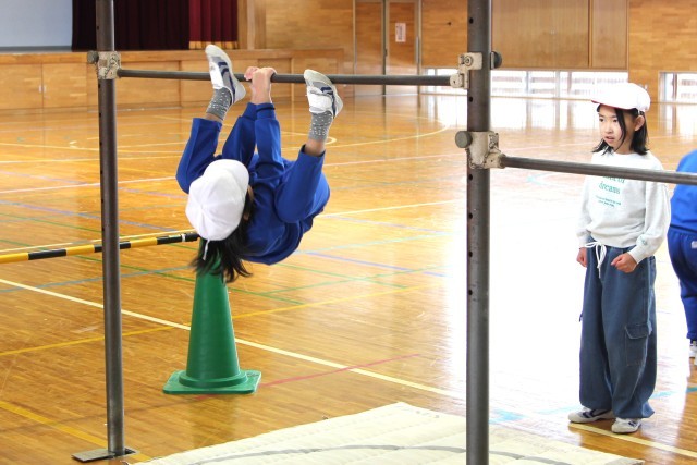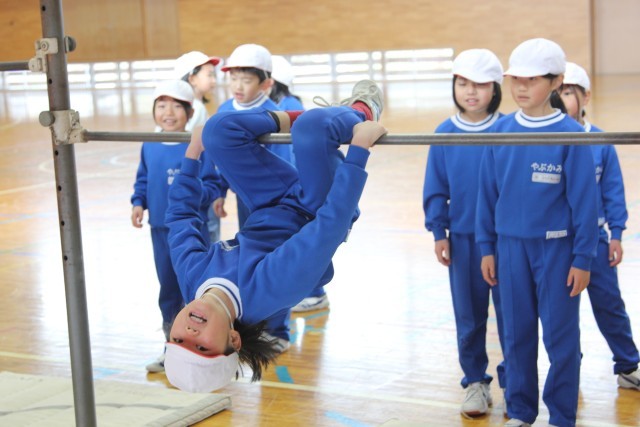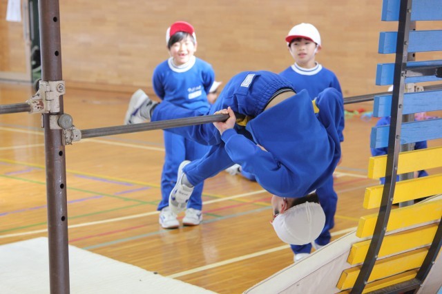 鉄棒運動をうまく行うには、逆さになる感覚や回転する感覚を高めていくことが大切になります。