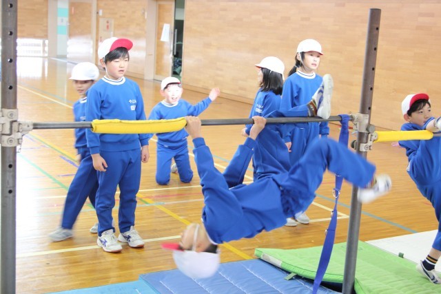 今日は、逆上がりとぶら下がって方向を変える技にチャレンジしている子が多くいました。
