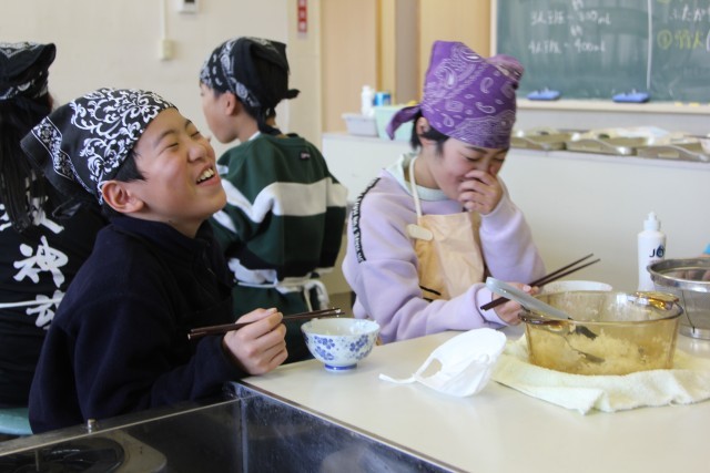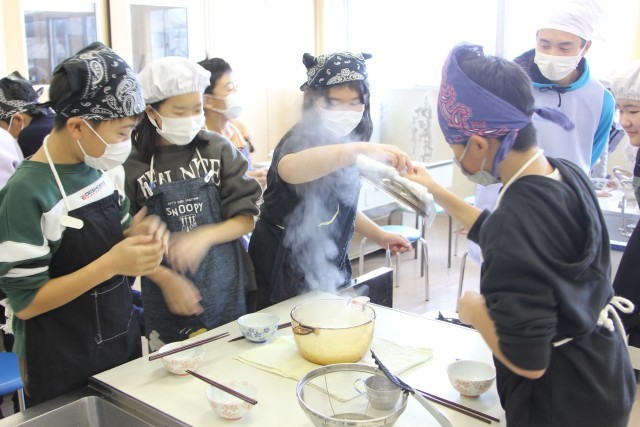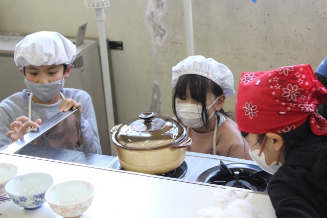 蒸らしが終わってふたを開けると、ホワッと湯気が立ち上がり「ワーッ」と歓声が上がります。