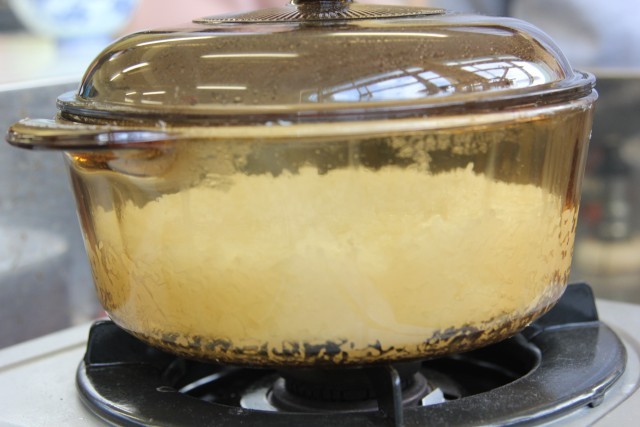 給水をして、水の量を調整し、火加減と時間をみながら炊き上げました。