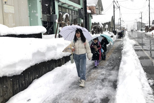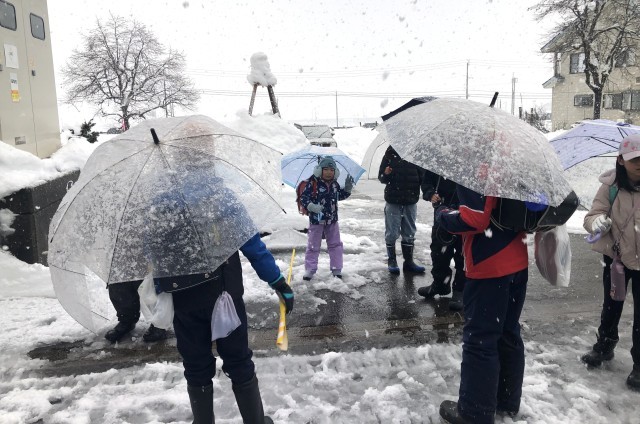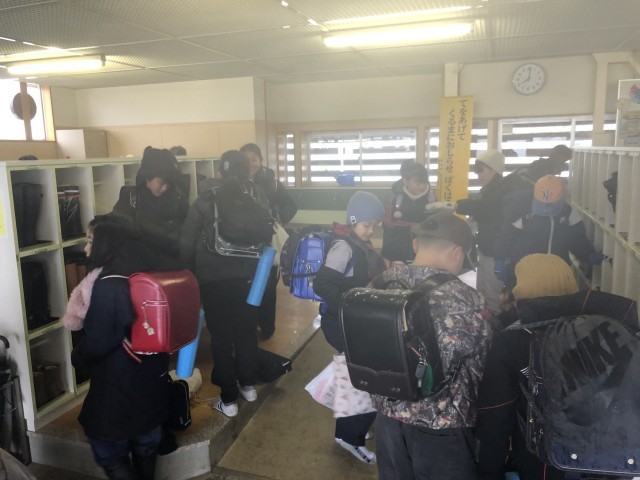 雪が降る寒い朝でしたが、子どもたちが元気に登校してきました。
