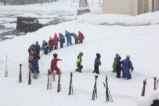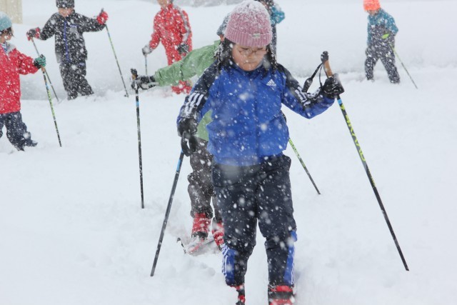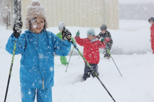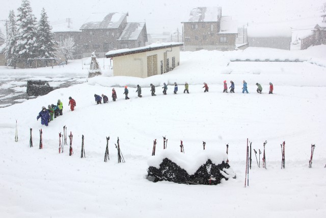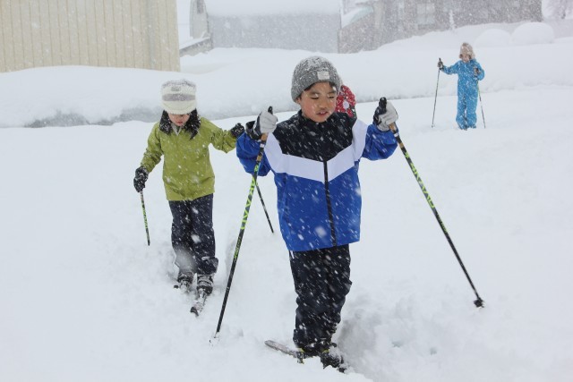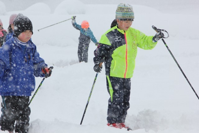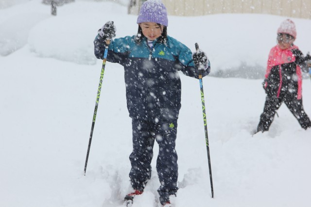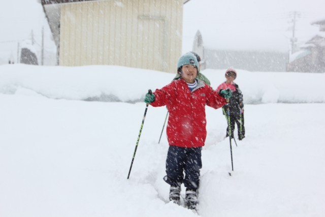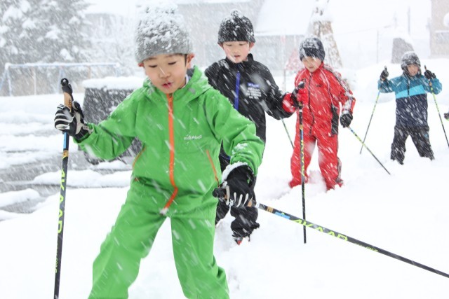 雪の降る中での授業でしたが、楽しくスキーをする姿にたくましさを感じました。