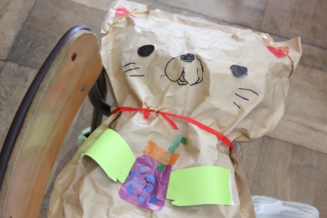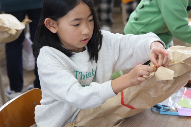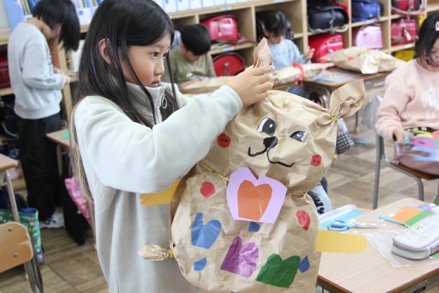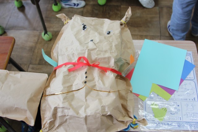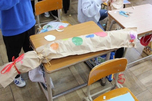 前回紹介したときは、新聞紙を袋に詰めるところでしたが、教室をのぞいてみると、だいぶ形になってきていました。