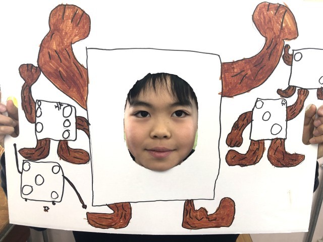 図工の「顔を出したら なんだかワクワク」という教材です。