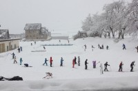 雪で覆われた体育館ですから、気温も低いのですが、子どもたちは裸足で元気に頑張っています。