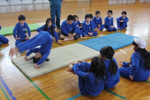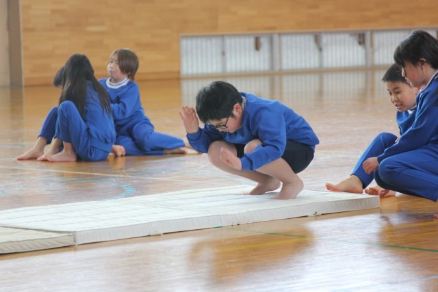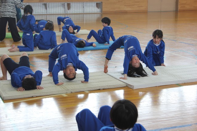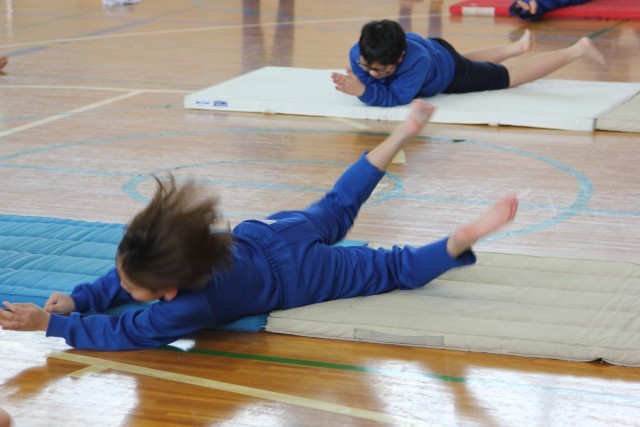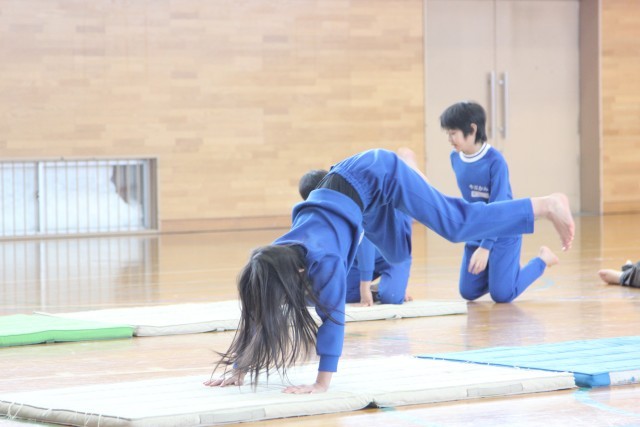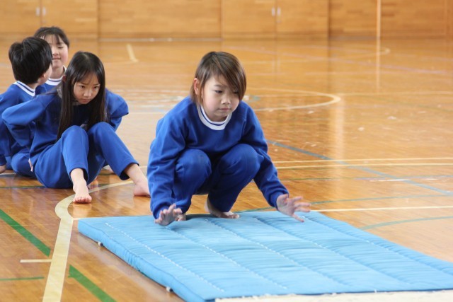 今日の体育はマット運動です。