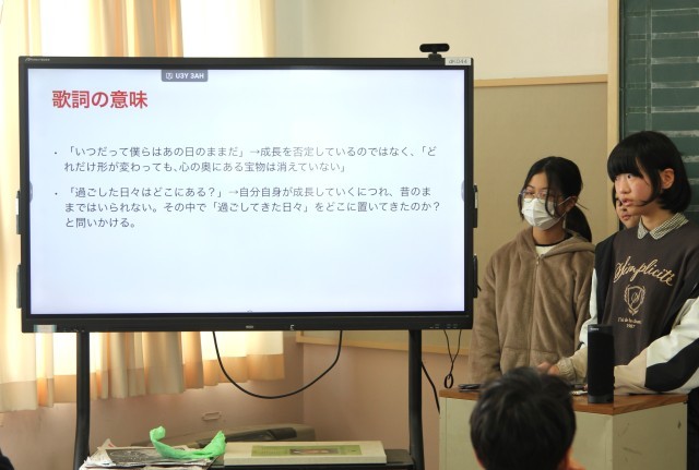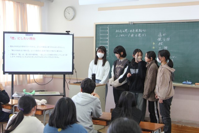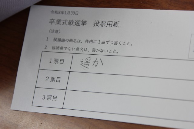 今日は、卒業式で歌う曲を決める活動をしていました。