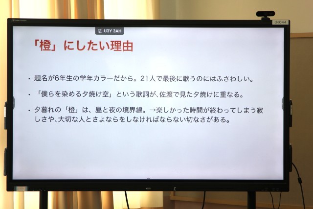 子どもたちは、なぜその曲がいいのか、その歌詞にこめられた想い、好きな歌詞とその理由などを伝え、ぜひ1票入れてほしいとお願いしていました。
