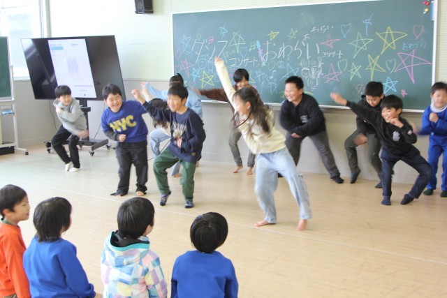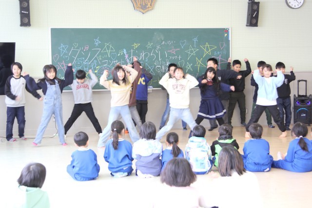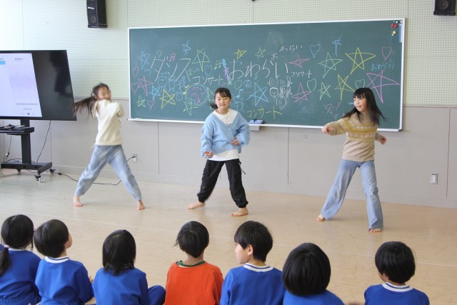 昼休みに、3年生の子たちが、お笑い&ダンスコンサートを開催しました。