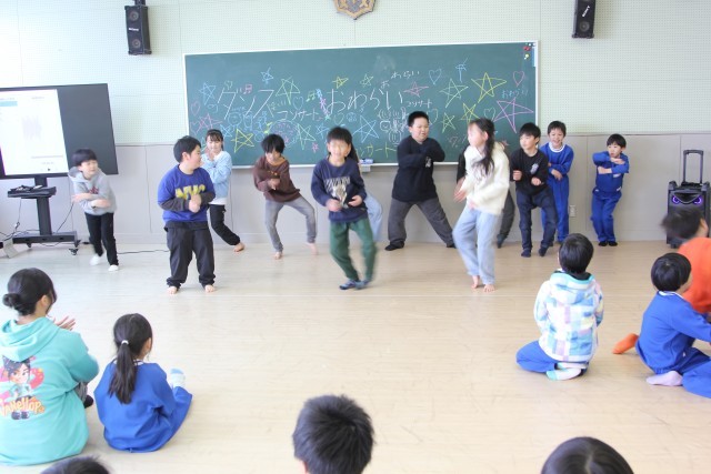 学年を問わず、踊りたい人が前に出て一緒にダンス。