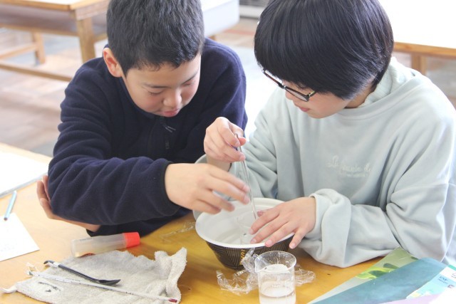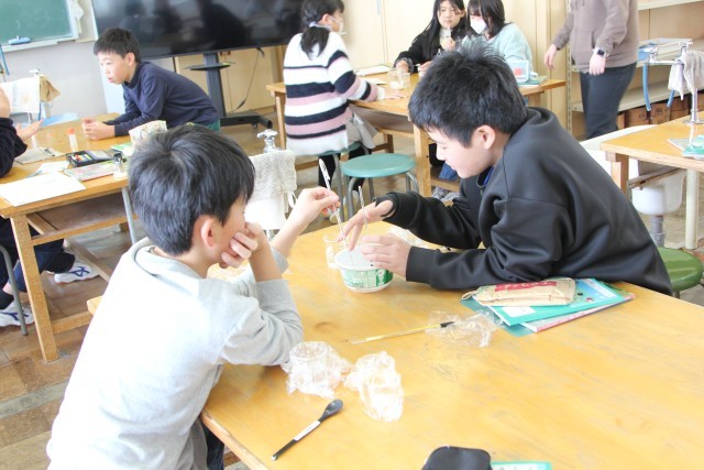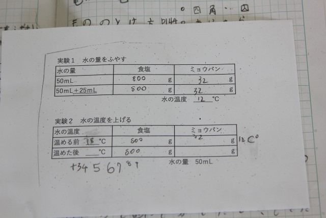 前回の実験では12℃の水温で実験しましたが、今日は湯せんをして、水温を上げて実験をしました。