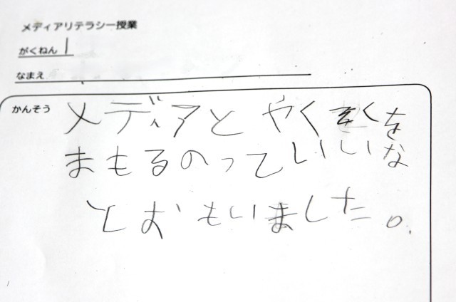 中島さんは、メディアにかかわるルールだけではなく、家庭や学校にもルールがあることに話を広げてくださり、生活の中でルールを守ることや、次にやることを考えながら生活することの大切さをお話くださいました。