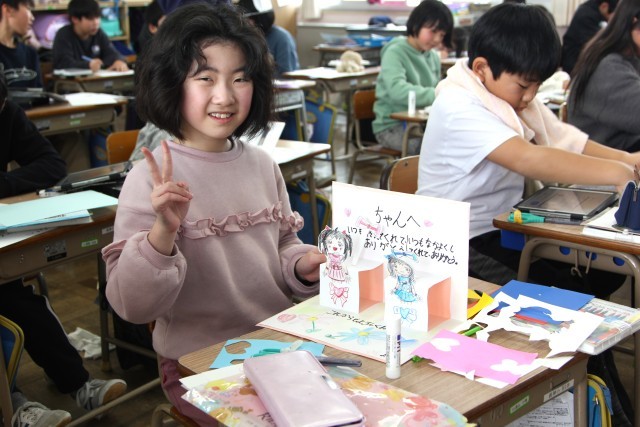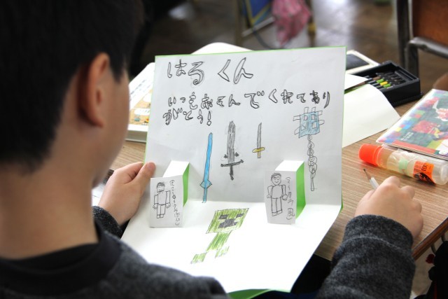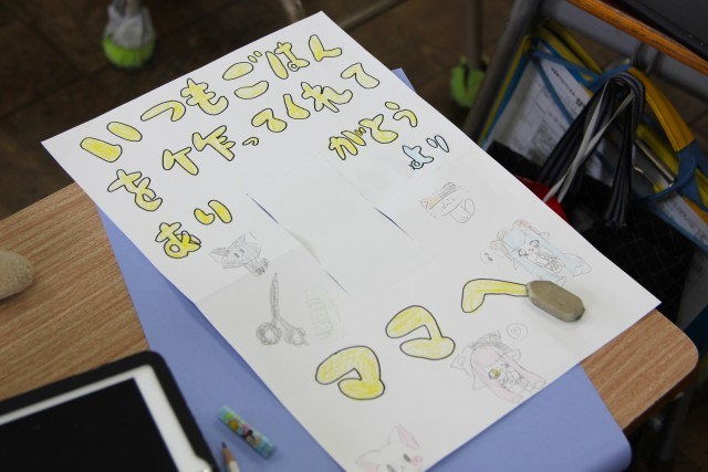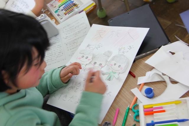 子どもたちは、日頃お世話になっている家族に感謝の気持ちを伝えようと、家族が好きなものをデザインに取り入れたりメッセージを書いたりしながら作品をつくっていました。