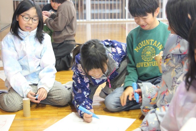 さらに、まとをつくってもよいと指示が出ると、子どもたちは大喜び。