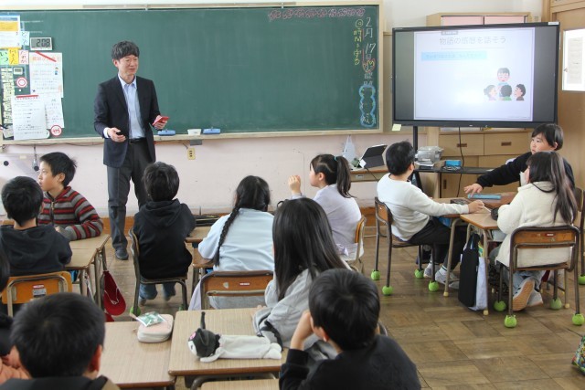 今日は、先週に引き続き、NPO法人 Grow Upの中島様に来校いただき、3年生から6年生にメディア・リテラシーの授業をしていただきました。