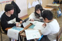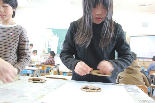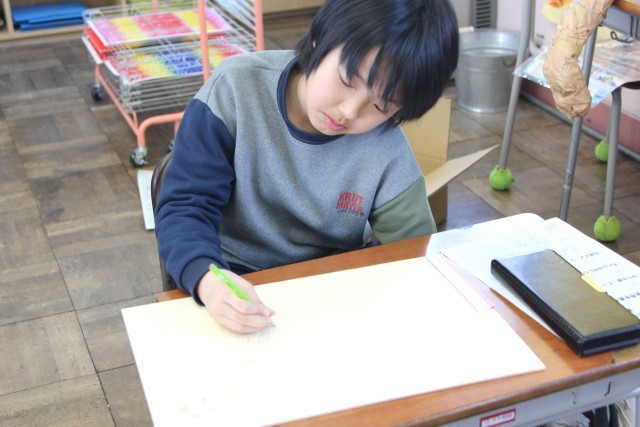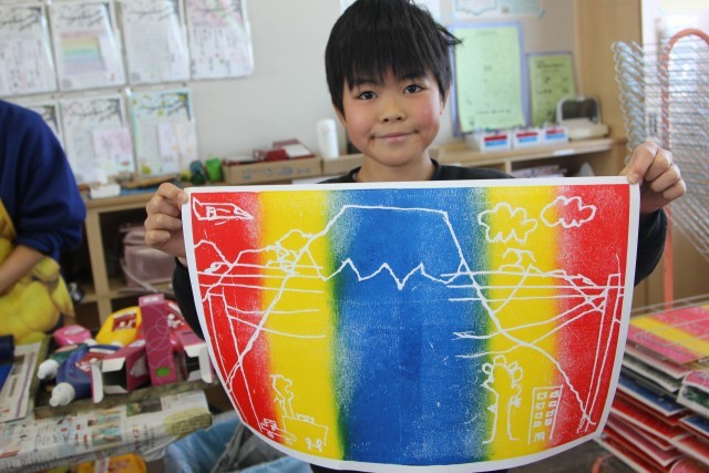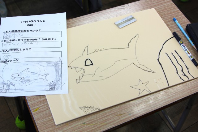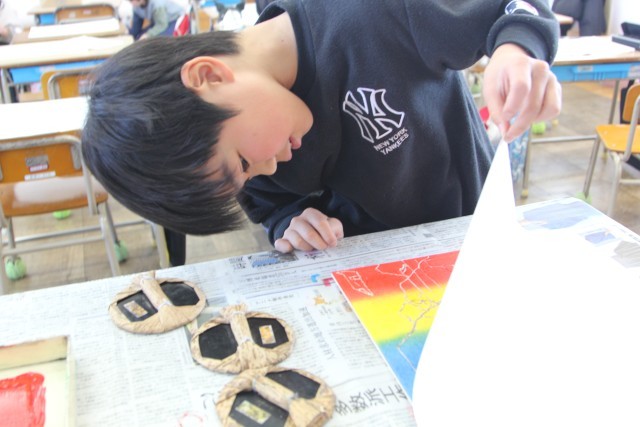 ボードが仕上がった子から順に、カラーインクをつけていきます。