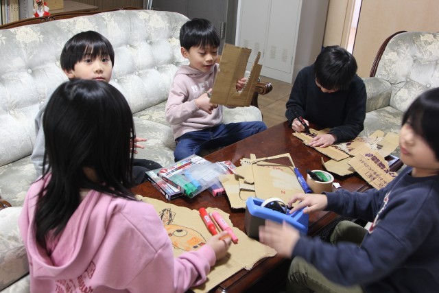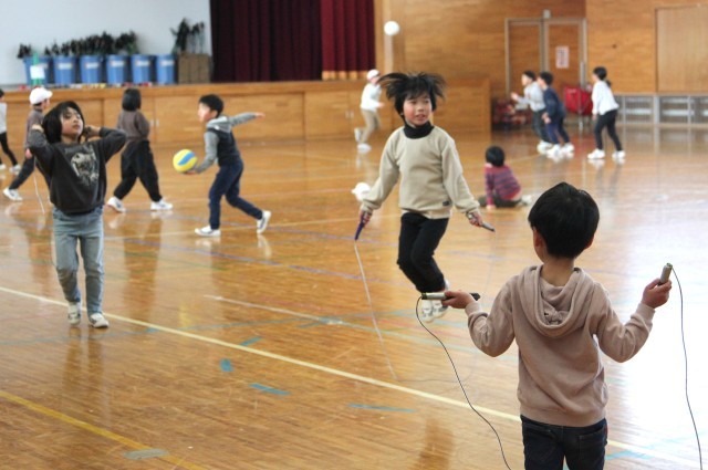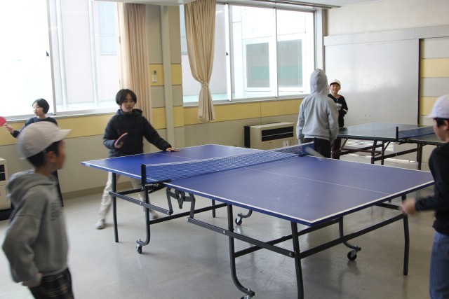 1年生から4年生までが、卓球、なわとび、バスケットボール、お絵描き、鍵盤ハーモニカの練習、工作、雪遊びなど、それぞれが楽しく過ごしていました。