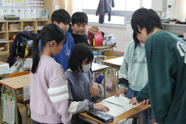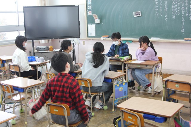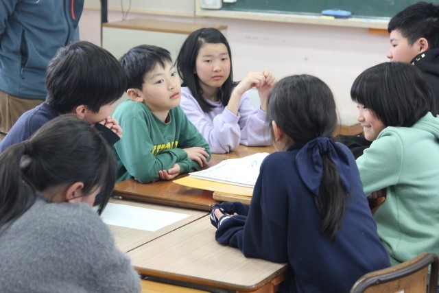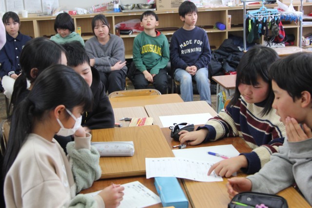 6年生がオブザーバーとなり、5年生が中心となって4年生と一緒に話し合いをします。