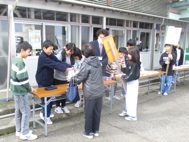 5年生も、参観日に合わせて、学校田で収穫したお米の販売活動を行いました。