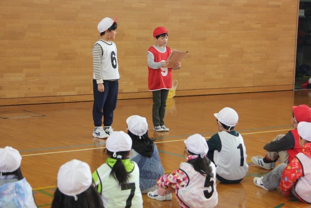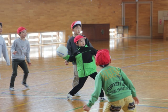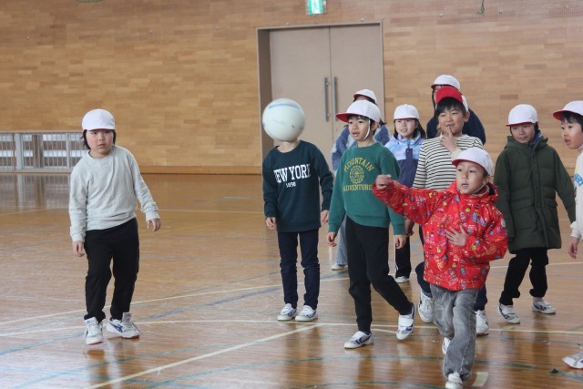 みんながボールを投げられるように声をかける2年生。