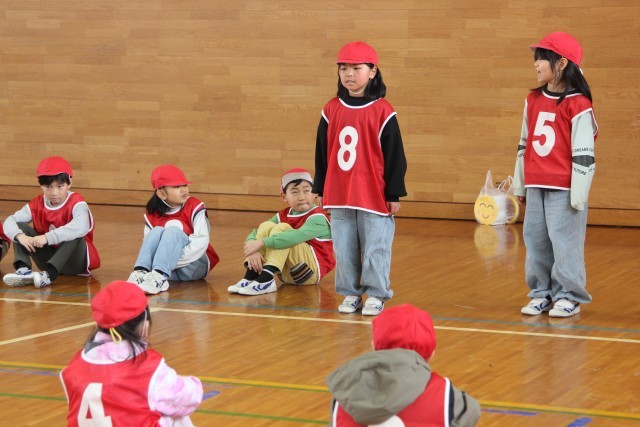 じゃんけんリレーとドッジボールです。