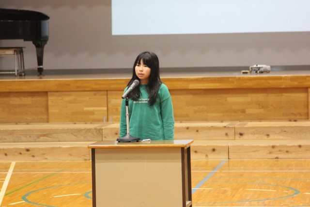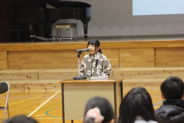 代表児童が、今学期を振り返って頑張ったことを発表してくれました。