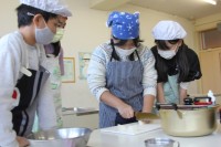 家庭科で調理実習を行いました。つくったのはみそ汁です。具材は、大根、油揚げ、わか...